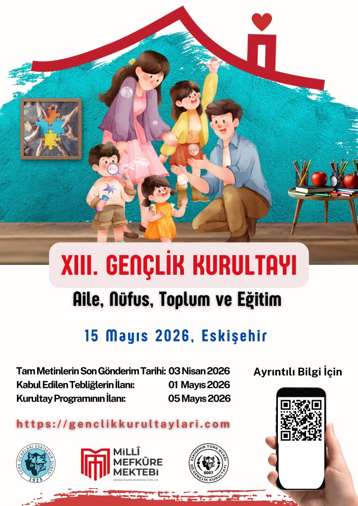 “Millî Mefkûre Mektebi” adı altında bir Türk Ocakları Akademisi modeli oluşturmanın gayreti içerisinde olan Türk Ocakları Eskişehir Şubesi tarafından 15 Mayıs 2026 Cuma günü ulusal hakemli XIII. Gençlik Kurultayı gerçekleştirilecektir. “Aile, Nüfus, Toplum ve Eğitim” temalı kurultaya katılmak için yazım kurallarına uygun şekilde hazırlanan tam metin bildirilerinizi başvuru formu ile birlikte millimefkuremektebieskisehir@gmail.com adresine göndermelisiniz. Gönderilen tebliğlerin öncelikle düzenleme kurulu tarafından kurultay temasına ve yazım kurallarına uygunluğu kontrol edilecek, uygun görülenler hakemler tarafından değerlendirilecektir.